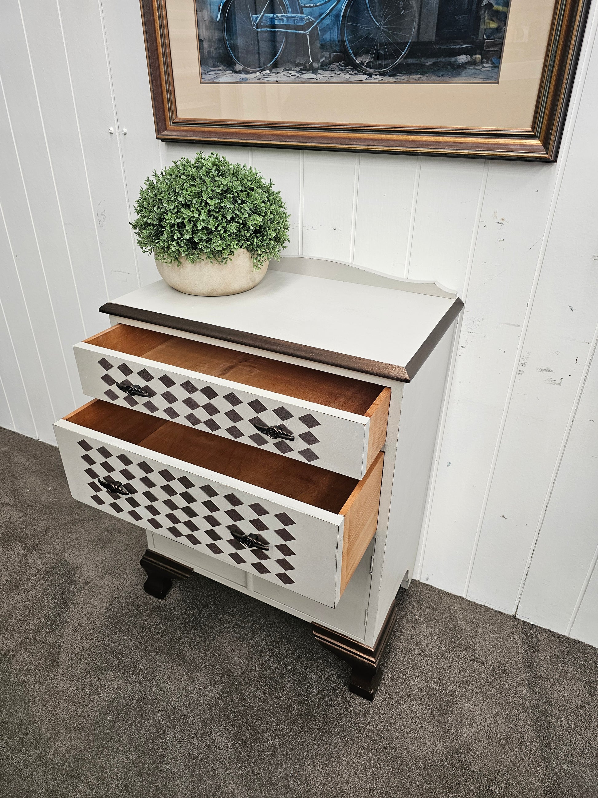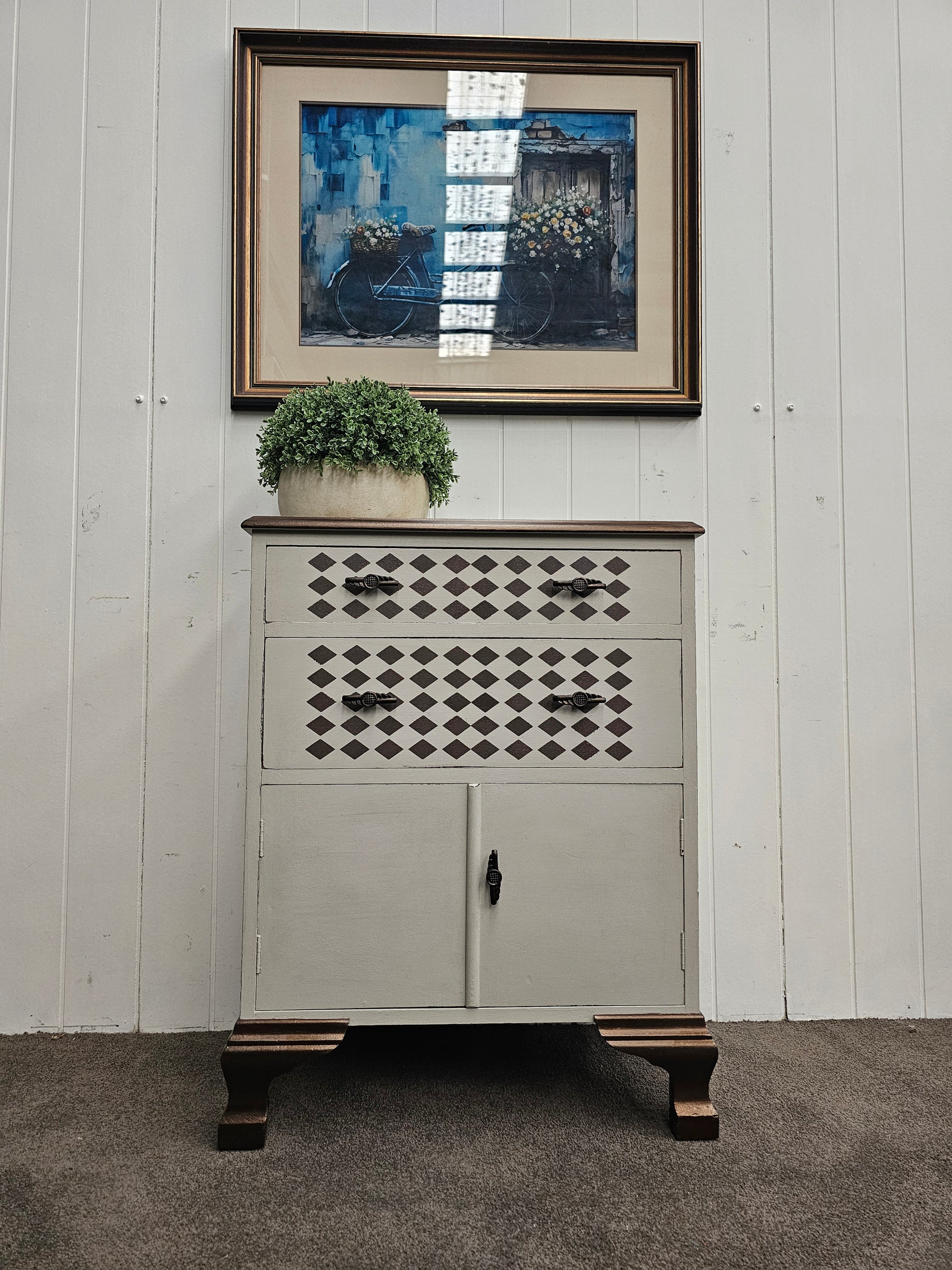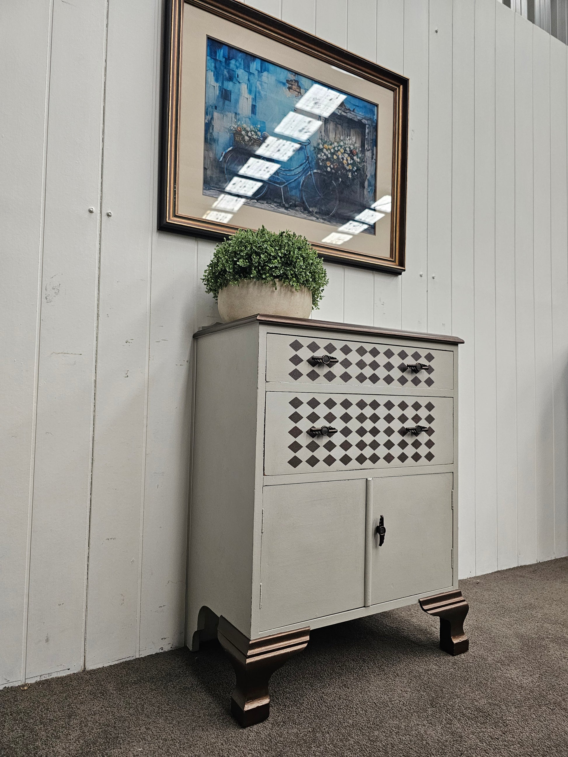 Offering two spacious drawers and a cupboard below, this vintage revival is as functional as it is decorative—ideal for storing anything from linens and books to everyday essentials. A true statement for lovers of quiet flair.