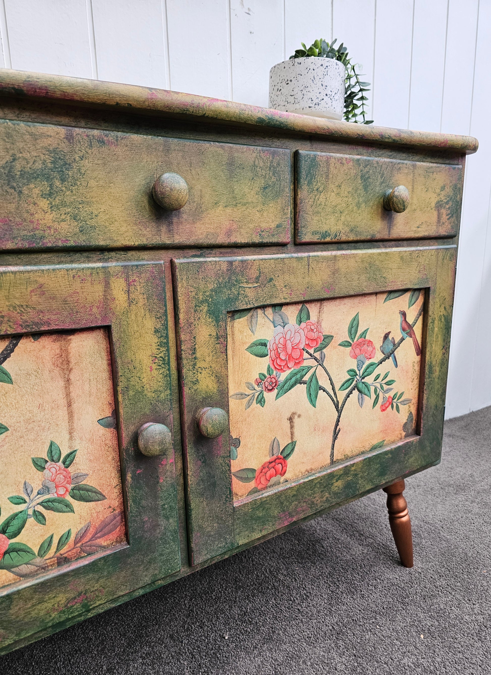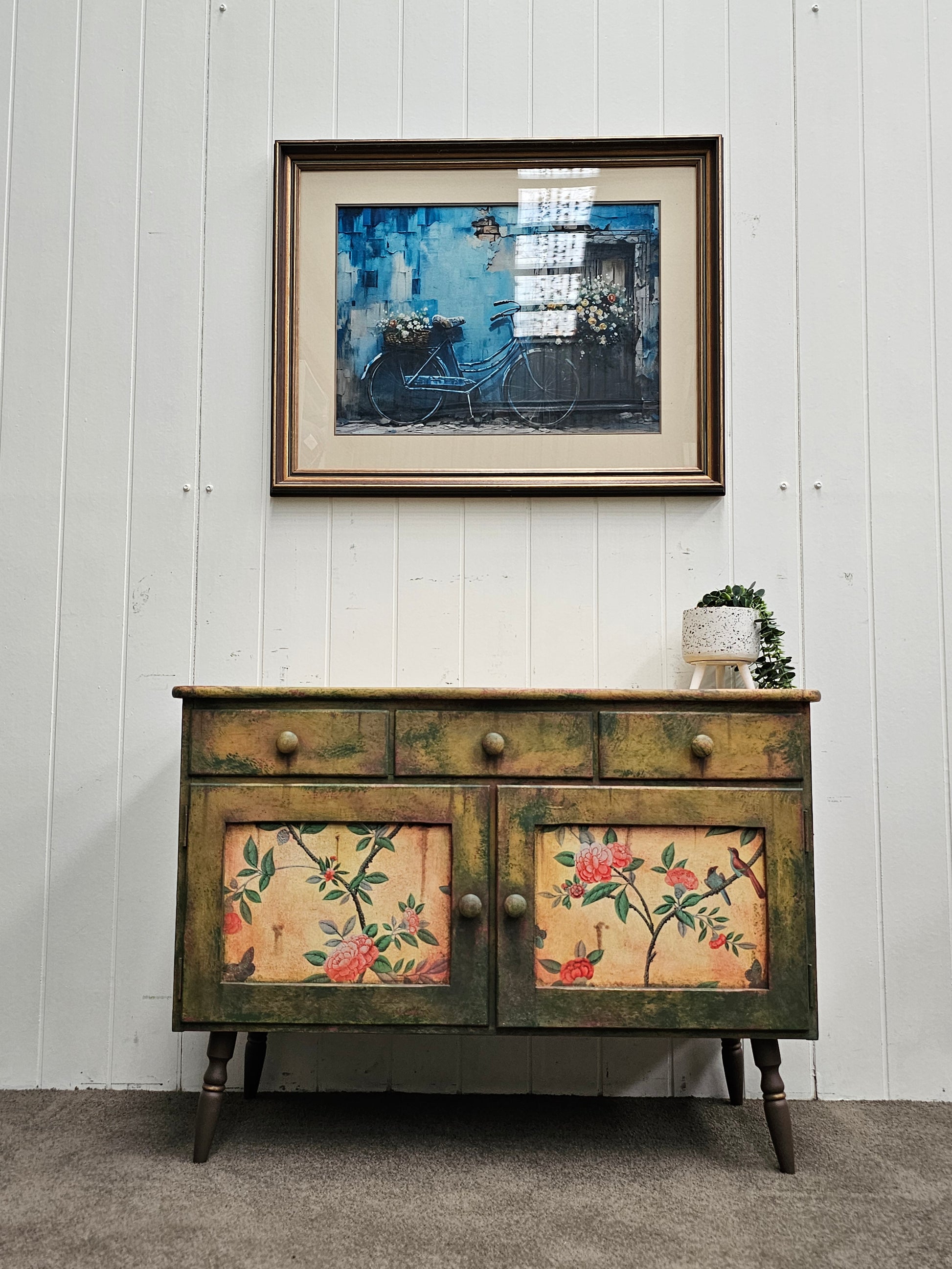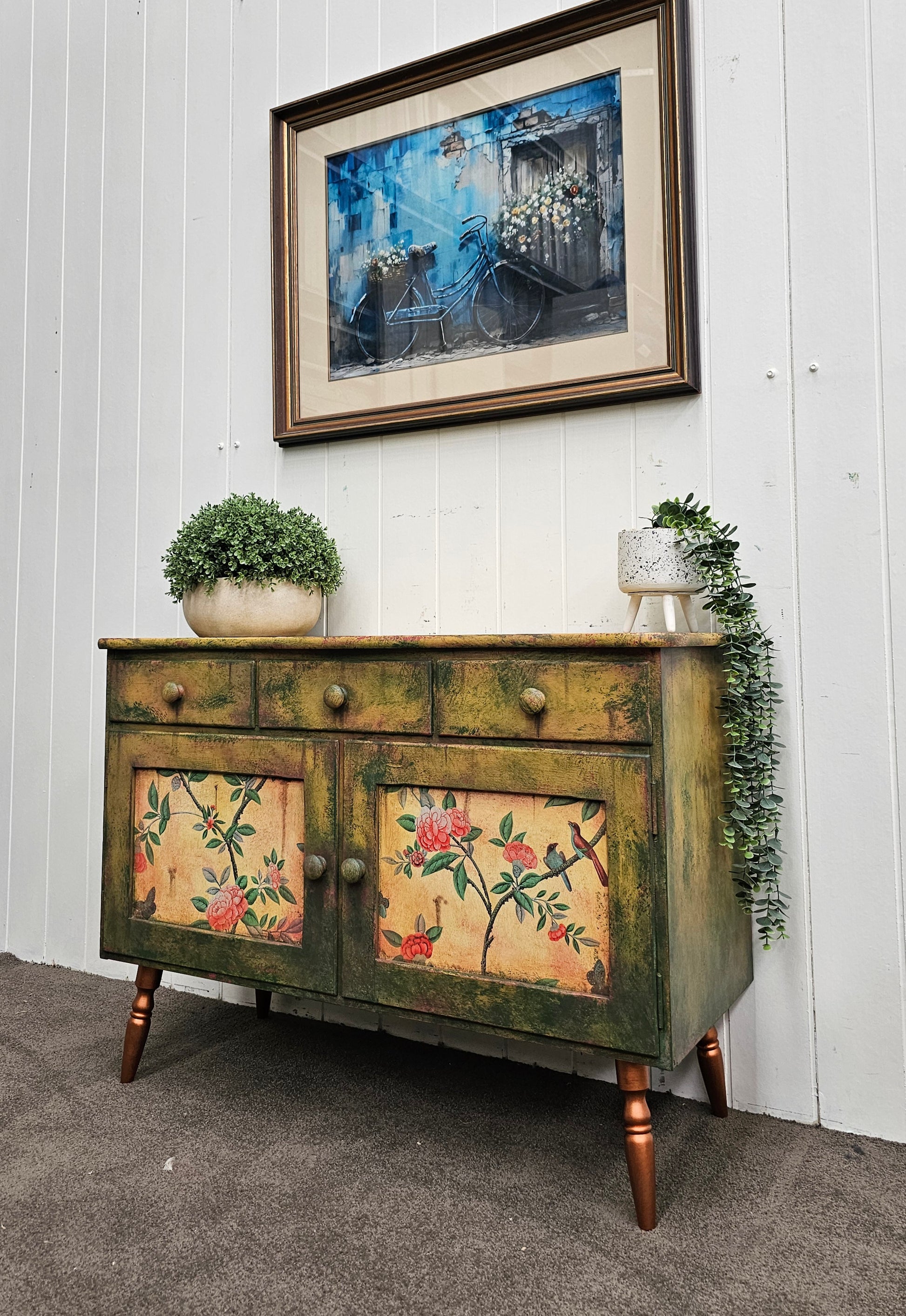 🔹 Best for: An earthy hallway anchor, a wild-hearted media console, or a storytelling centrepiece in a cottagecore home