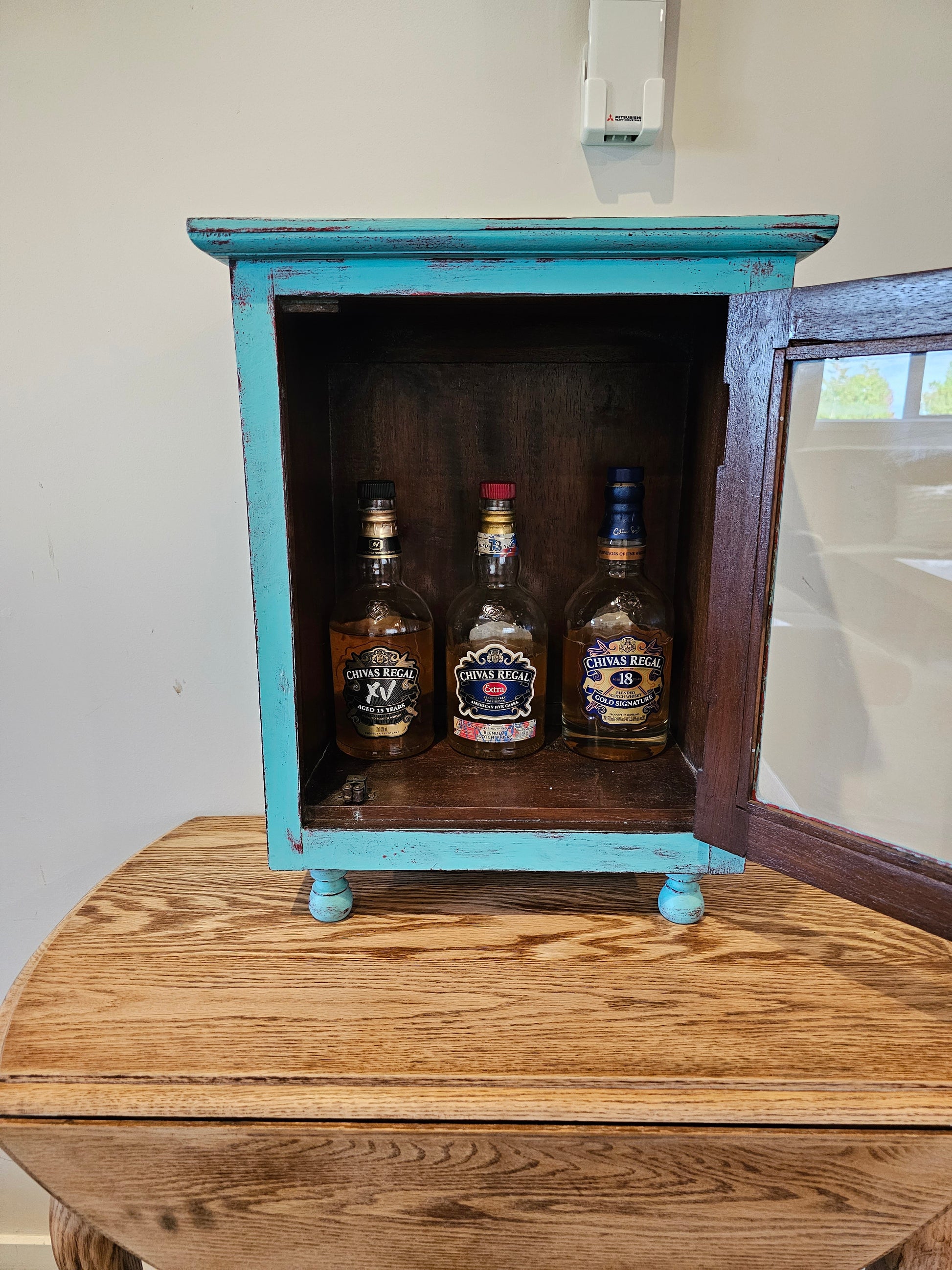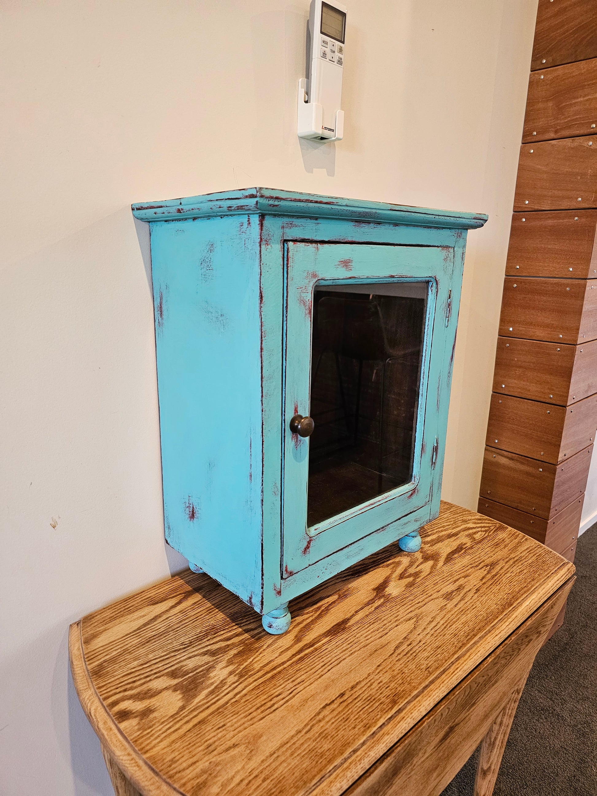 Delicate yet bold, Tideglass is a turquoise jewel box of a cabinet—its weathered patina reminiscent of sea-washed glass and sun-faded beach huts. The hand-distressed aqua finish glows with coastal character, while the petite size makes it perfect for adding a splash of charm to any nook.