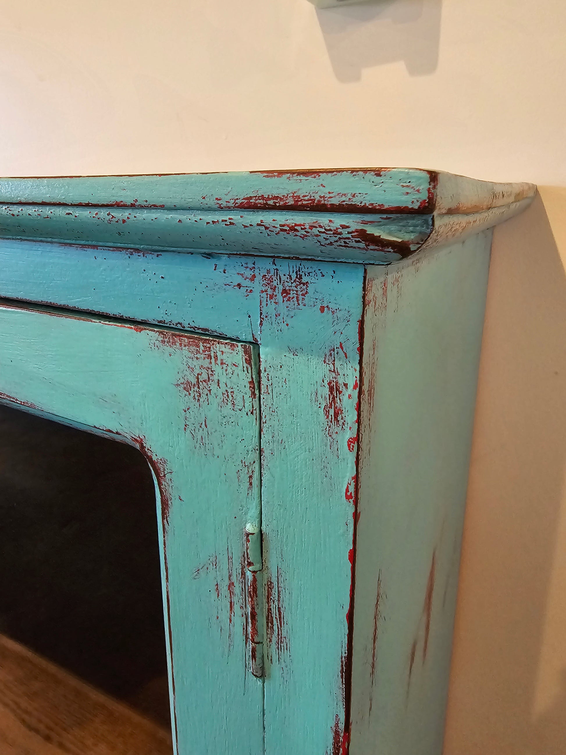 🔹 Finish: Distressed turquoise with hints of rustic red underlayers