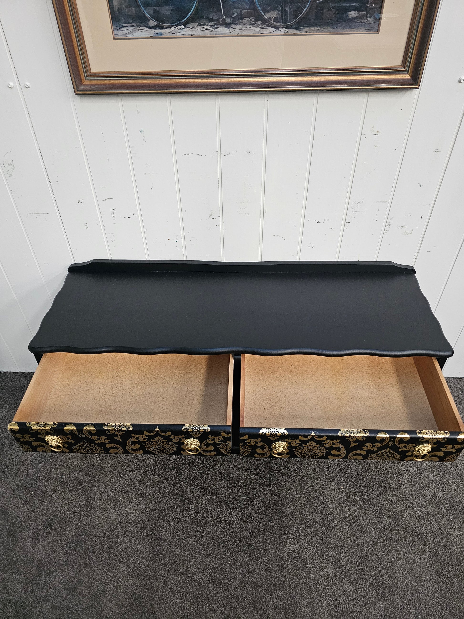 🔹 Finish: Black body with metallic gold damask print on upper drawers; smooth, satin-touch texture